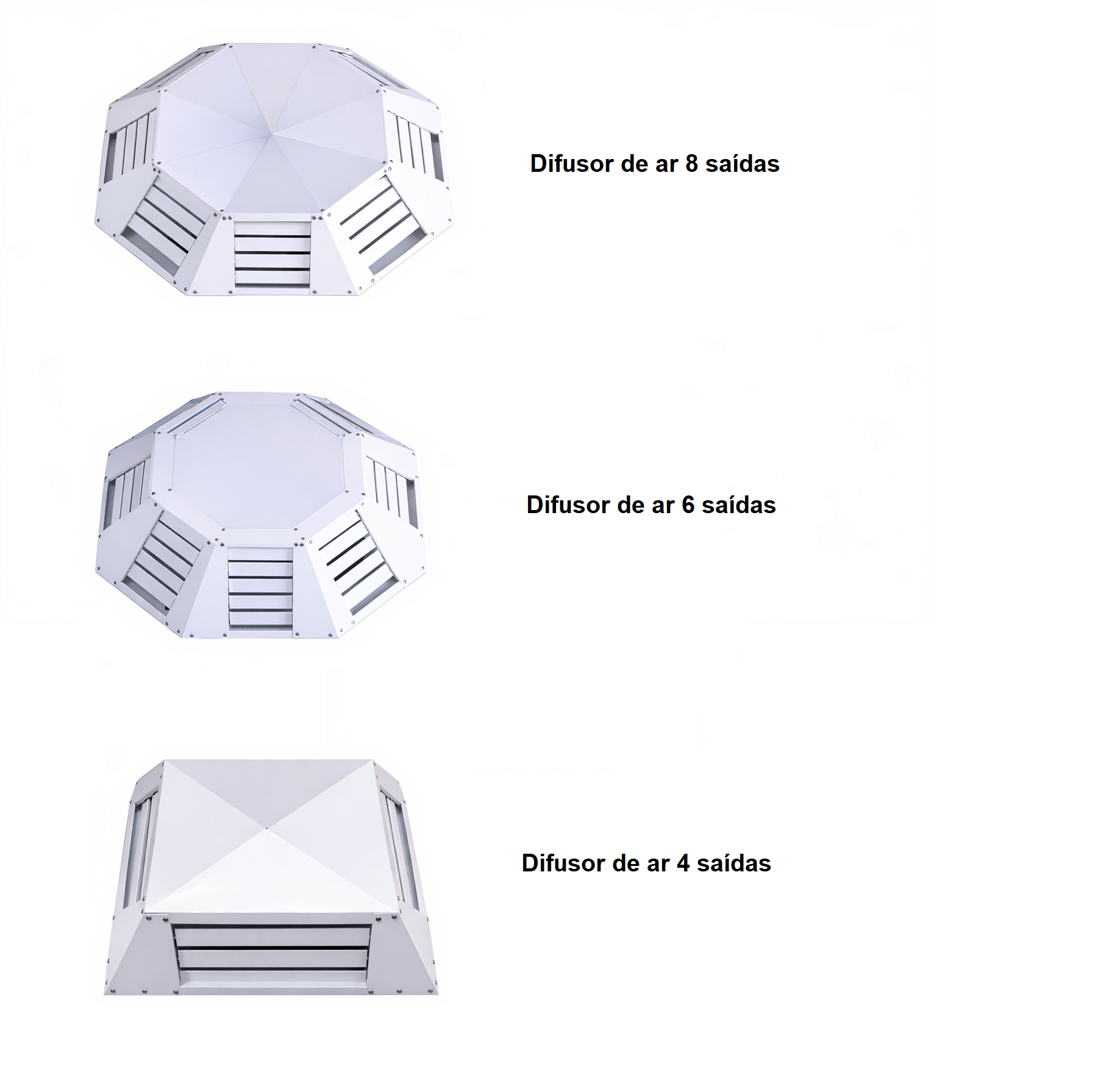 Confira nosso difusor de ar com 4 saídas e 6 saídas para diferentes necessidades de cobertura.